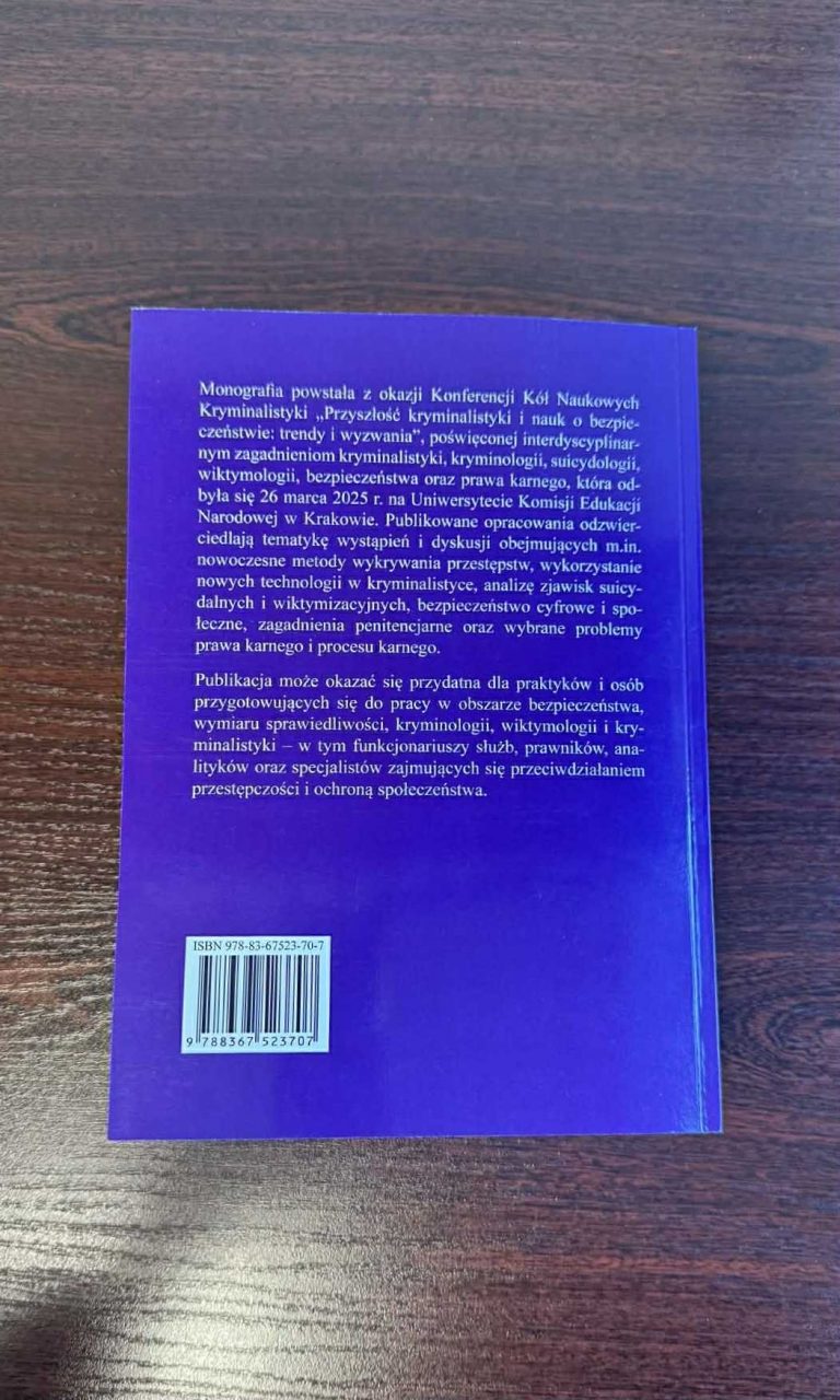 MONOGRAFIA POKONFERENCYJNA „Przyszłość kryminalistyki i nauk o bezpieczeństwie: trendy i wyzwania”
